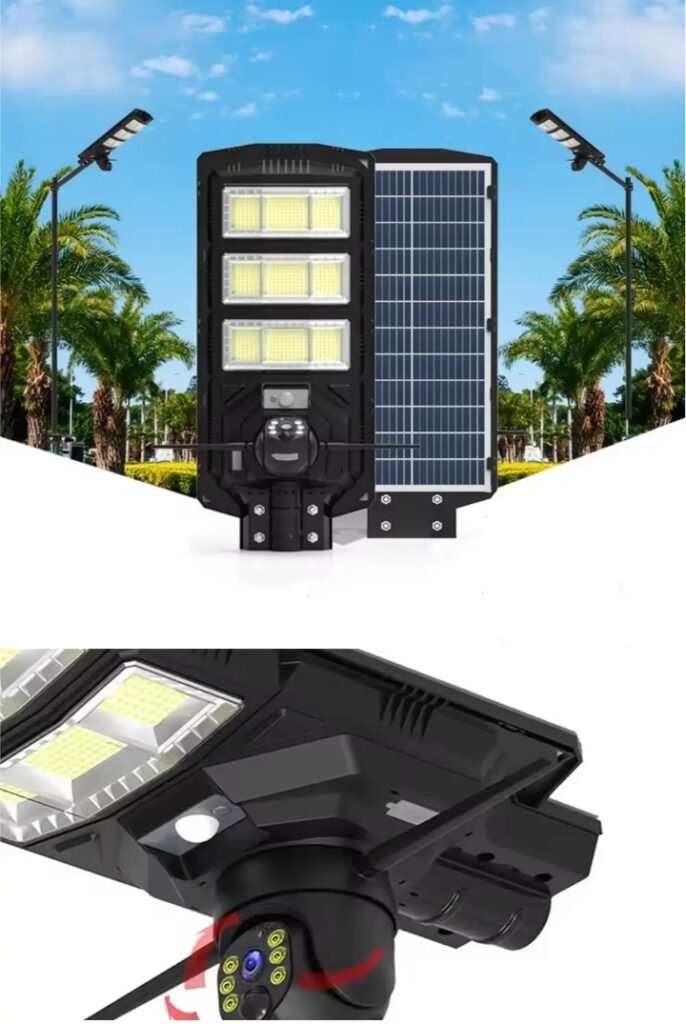 450W All In one Solar Street Light With 4G Wifi solar camera 3MP V380Pro AI Camera Solar Light